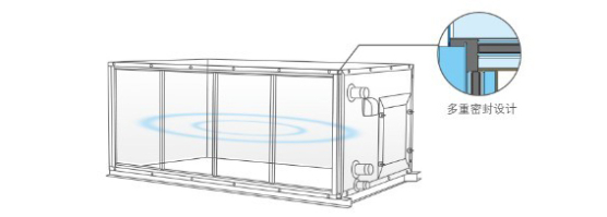 整機(jī)箱體的防冷橋系數(shù)滿足歐洲空氣處理機(jī)組標(biāo)準(zhǔn)EN1886的TB2級(jí)要求,防凝露效果出色,氣密性好。